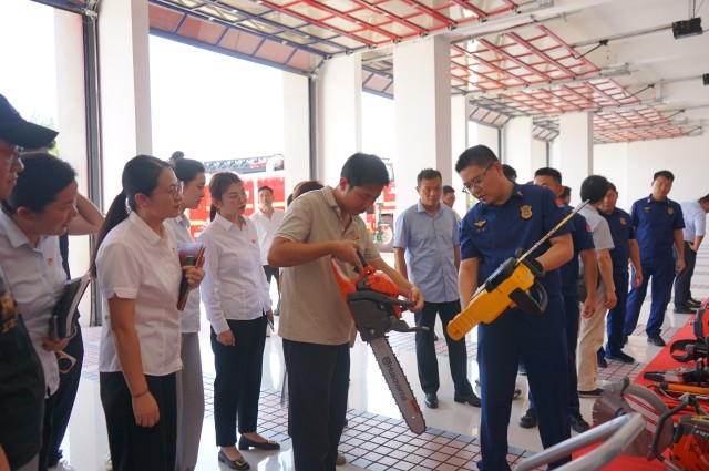 全體人員首先實(shí)地參觀了消防救援支隊(duì)特勤一站的救援車輛與裝備,消防員詳細(xì)講解了各類器材的功能與應(yīng)用場景,展示了快速破拆、水槍射流等實(shí)戰(zhàn)操法,精湛技能和颯爽英姿贏得陣陣掌聲。在體驗(yàn)環(huán)節(jié),青年代表體驗(yàn)了消防液壓剪切鉗、消防水帶的操作使用。