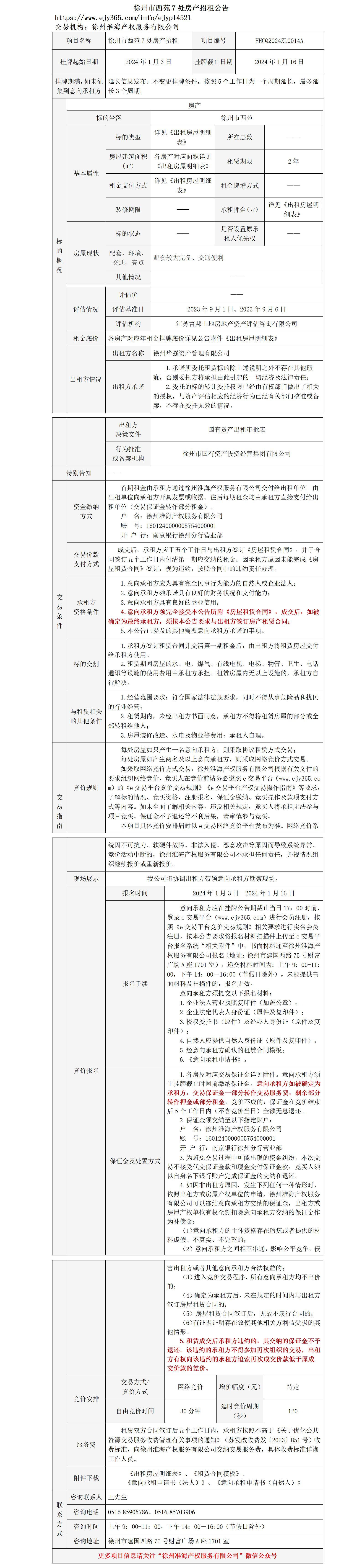 徐州市西苑7處房產(chǎn)招租公告