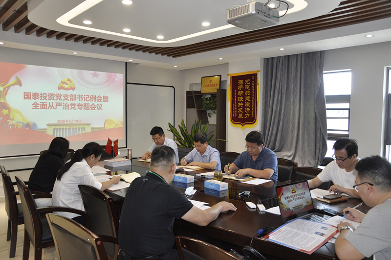 2020年6月10日下午,國(guó)泰投資黨總支召開(kāi)支部書記例會(huì)暨全面從嚴(yán)治黨專題工作會(huì)議。會(huì)議以習(xí)近平新時(shí)代中國(guó)特色社會(huì)主義思想為指導(dǎo),深入學(xué)習(xí)市紀(jì)委第十二屆五次全會(huì)精神,貫徹落實(shí)李曉東同志在集團(tuán)公司2020年全面從嚴(yán)治黨工作會(huì)議上的講話,推動(dòng)國(guó)泰投資公司全面從嚴(yán)治黨向縱深發(fā)展。會(huì)議由國(guó)泰投資黨總支書記霍凱主持,黨總支中心組成員、各直屬黨支部書記參加。