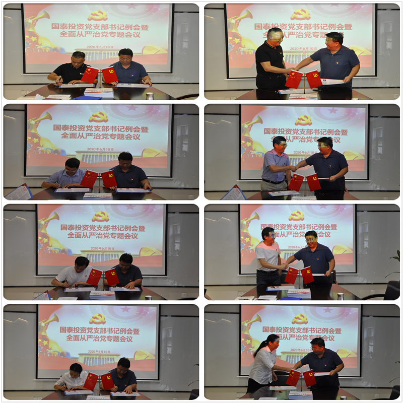 會(huì)上,霍凱同志代表公司黨總支,與各直屬黨支部書記簽署了《2020年度全面從嚴(yán)治黨責(zé)任書》,從制度上形成了以上率下、層層壓實(shí)責(zé)任的黨風(fēng)廉政建設(shè)責(zé)任體系?;魟P強(qiáng)調(diào),簽訂并履行責(zé)任書任務(wù),落實(shí)全面從嚴(yán)治黨各項(xiàng)制度,強(qiáng)化政治意識(shí)與政治規(guī)矩,是降低公司經(jīng)營(yíng)風(fēng)險(xiǎn),減少管理問(wèn)題,保障國(guó)泰投資順利轉(zhuǎn)型發(fā)展的政治保障。國(guó)泰投資全體黨員干部必須嚴(yán)格遵守黨風(fēng)廉政建設(shè)各項(xiàng)制度,立足本職崗位,在工作生活中以身作則,知敬畏,守底線,嚴(yán)格自律,并接受社會(huì)各界全方位的監(jiān)督。