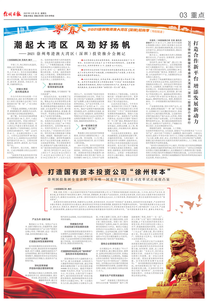 自2017年被確定為全市首家國有資本投資運營公司改革試點、2019年被確定為全省首批國有資本投資公司改革試點以來,集團公司堅持全面深化改革,勇于作為,創(chuàng)新作為,推出系列改革舉措,取得了明顯成效,徐州日報對集團公司改革試點工作進行了專題報道,全文如下: