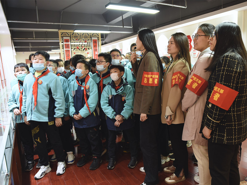4月19日,解放路小學(xué)百名學(xué)生來到蘇悅黨支部紅色藏品微展館參觀學(xué)習(xí),華強(qiáng)團(tuán)支部組織團(tuán)員青年作為志愿者維護(hù)現(xiàn)場(chǎng)秩序,全程守護(hù)學(xué)生們的安全,在接受黨史學(xué)習(xí)教育的同時(shí),確保此次活動(dòng)順利開展。