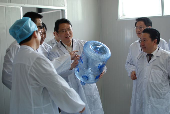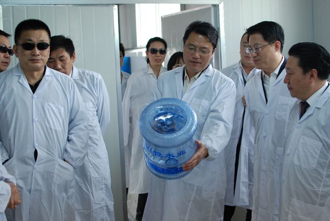 當(dāng)天上午,集團(tuán)公司董事長李修明、總經(jīng)理李曉東、副總經(jīng)理屈炎、馬英、姜巖、吳昊、副調(diào)研員劉立吉以及相關(guān)部室負(fù)責(zé)人前往水業(yè)公司廠區(qū)進(jìn)行了視察。集團(tuán)公司領(lǐng)導(dǎo)認(rèn)真聽取了水業(yè)公司負(fù)責(zé)人對企業(yè)袋裝水、桶裝水生產(chǎn)、檢驗(yàn)、銷售情況的介紹,參觀了生產(chǎn)車間和生產(chǎn)設(shè)備,深入了解了每一個(gè)工序的工作流程,對企業(yè)在技術(shù)創(chuàng)新和科學(xué)管理方面取得的成績給予了充分的肯定。
