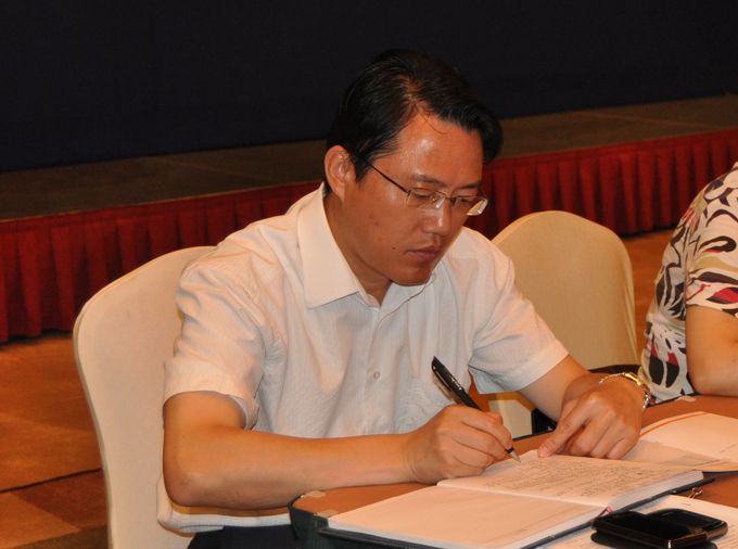 圖二:集團(tuán)公司黨委書(shū)記、董事長(zhǎng)李修明在主席臺(tái)上就座