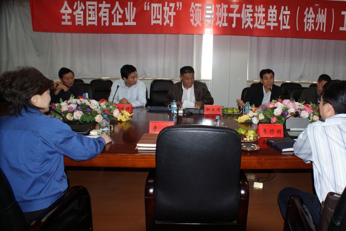 2011年9月21日上午,以省蘇豪集團(tuán)黨委副書(shū)記、紀(jì)委書(shū)記劉顯豪為組長(zhǎng)的省“四好”領(lǐng)導(dǎo)班子考核小組第四組一行4人來(lái)到徐州,對(duì)徐工集團(tuán)、國(guó)投集團(tuán)等全省國(guó)有企業(yè) “四好”領(lǐng)導(dǎo)班子候選單位進(jìn)行檢查考評(píng)。市委組織部副部長(zhǎng)杜慶琦、干部四處處長(zhǎng)張小件,市國(guó)資委副書(shū)記、副主任孫惠風(fēng)參加會(huì)議并聽(tīng)取匯報(bào)。