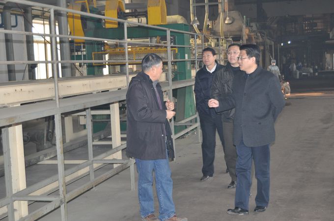 在海鷗集團副總經理劉明星、遠大玻纖制品有限公司總經理朱友泉的陪同下,姜巖副總經理一行考察了遠大玻纖公司生產流水線,聽取了企業(yè)近期經營情況的匯報,并就遠大玻纖公司生產線技改方案進行了討論。