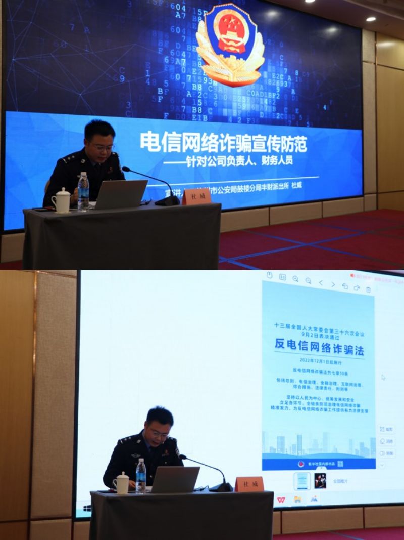 國泰投資公司以“無詐企業(yè)”創(chuàng)建活動為牽引,邀請徐州市公安局鼓樓分局豐財派出所杜所長擔(dān)任主講人,開展了一期“電信網(wǎng)絡(luò)詐騙防范宣傳”專題培訓(xùn)。杜所長以近期頻發(fā)的電信網(wǎng)絡(luò)詐騙真實案件為例,為員工深入剖析電信詐騙的基本類型、話術(shù)特點、基本流程以及防范措施,用“以案釋法”的方式講解了冒充客服詐騙、AI科技詐騙、刷單詐騙、公檢法詐騙等常見手段,從不同角度為員工講授防騙知識,同時也向員工普及了《網(wǎng)絡(luò)安全法》《反電信詐騙法》《個人信息保護法》等相關(guān)的法律法規(guī)知識。