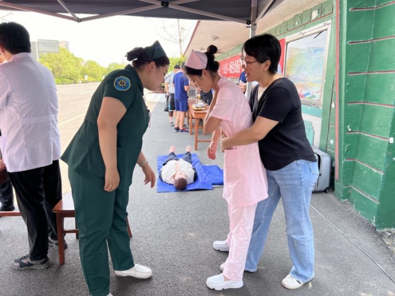 活動中,中心醫(yī)院急救組現(xiàn)場指導和演練了心肺復蘇急救、海姆立克急救技能,詳細、細致地為職工們解釋了什么時候需要心肺復蘇以及如何呼救,心臟按壓時的手法和按壓深度,人工呼吸吹氣時的注意事項等內(nèi)容。通過講解,職工感到受益匪淺,他們笑著調(diào)侃說:“真是百看不如一練?!?