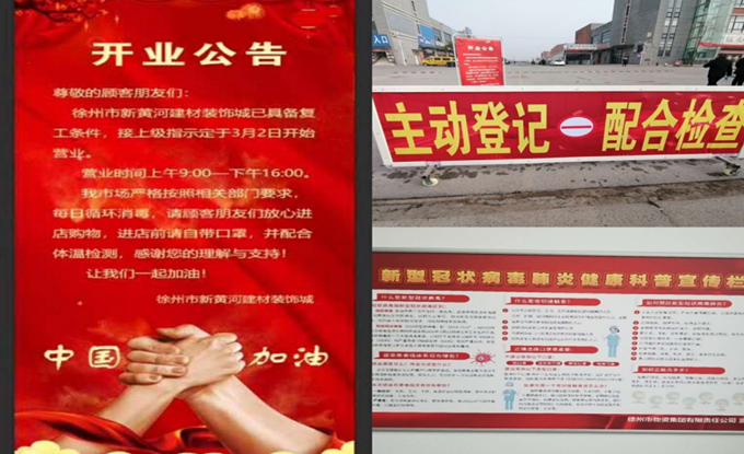 為全面貫徹落實市委、泉山區(qū)《關(guān)于切實做好服務(wù)業(yè)企業(yè)復(fù)工復(fù)產(chǎn)工作的通知》文件精神,新黃河裝飾城嚴格落實疫情防控措施,并通過屬地政府審核驗收,于3月2日全面復(fù)工復(fù)產(chǎn)。