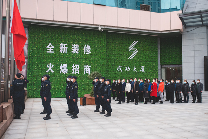 為慶祝成功大廈以全新的姿態(tài)面向大眾,3月16日上午,華強(qiáng)資產(chǎn)公司領(lǐng)導(dǎo)班子、本部中層干部及下屬三級公司領(lǐng)導(dǎo)班子、成功大廈全體員工在成功大廈廣場舉行隆重的“升旗儀式”。集團(tuán)公司黨委委員、副總經(jīng)理郭壘出席活動。